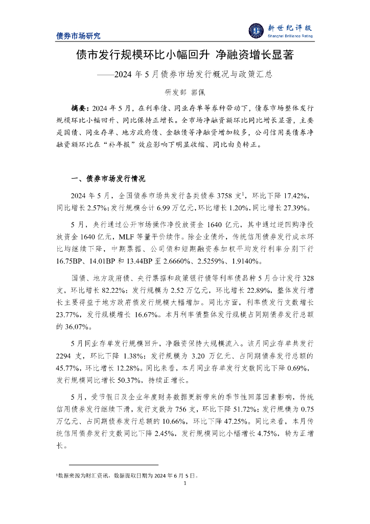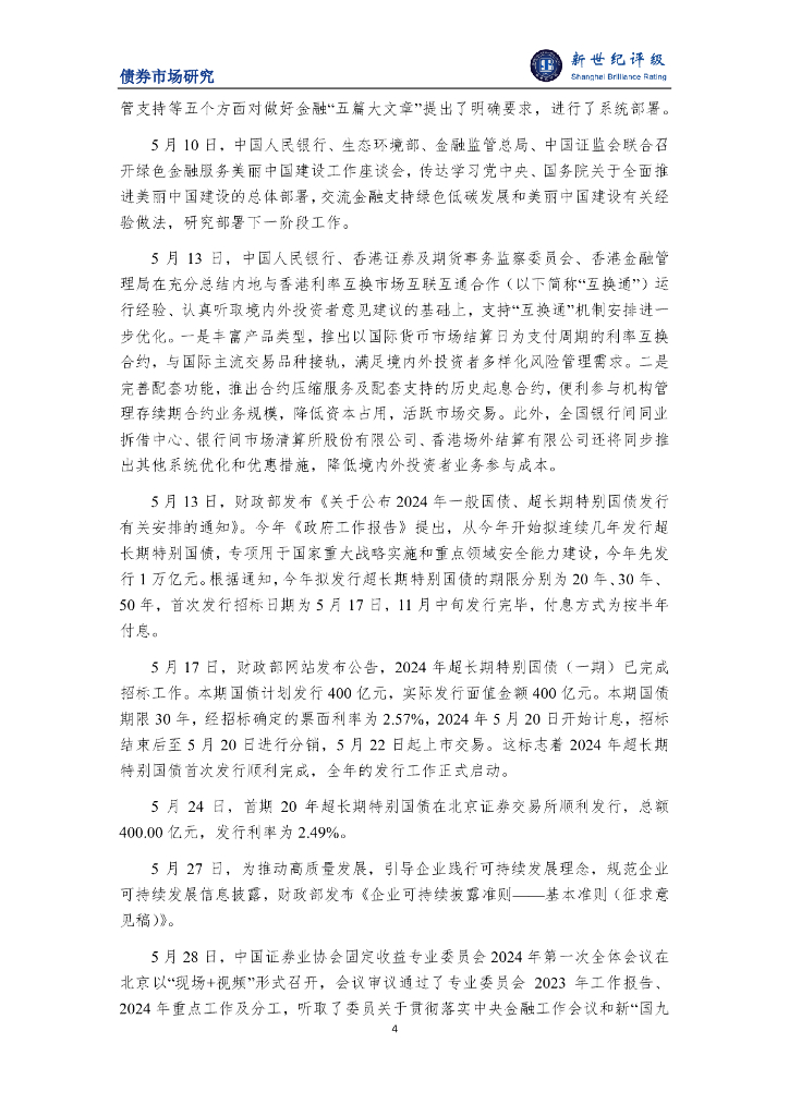 新世纪评级:债市发行规模环比小幅回升 净融资增长显著——2024年5月债券市场发行概况与政策汇总.pdf