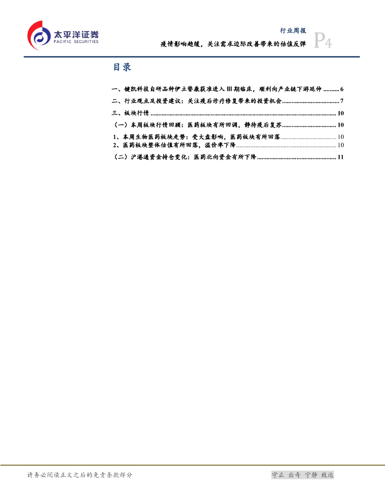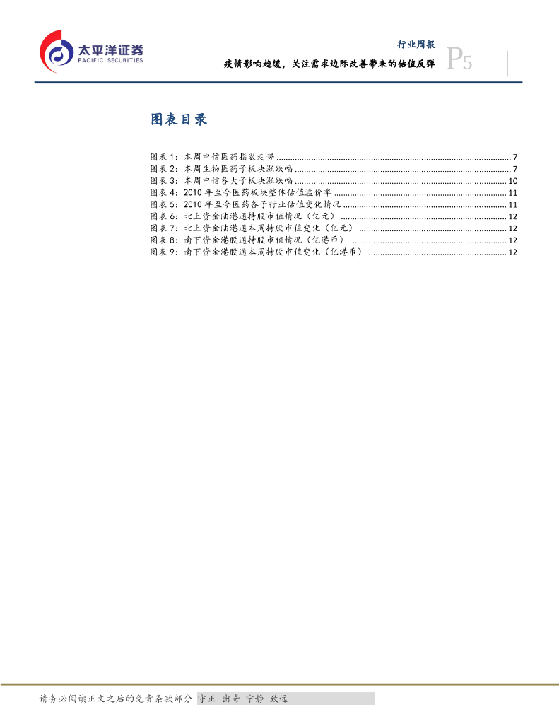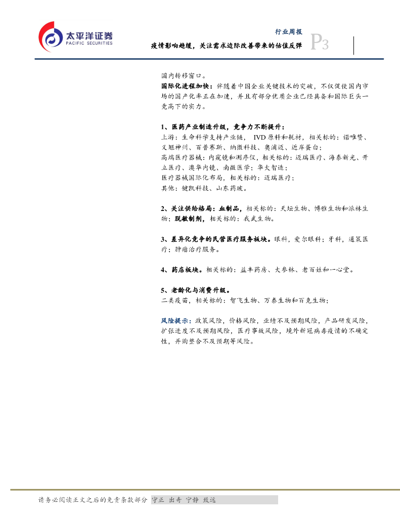 太平洋证券:医药行业周报:疫情影响趋缓,关注需求边际改善带来的估值反弹.pdf