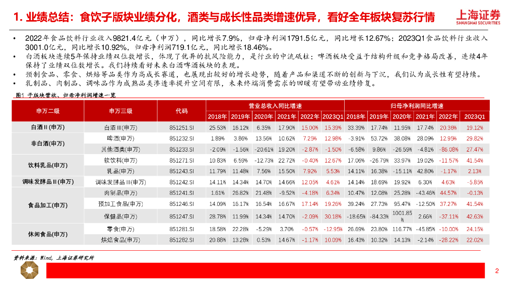 上海证券:食品饮料22年报与23Q1业绩总结:稳健收官,复苏延续.pdf