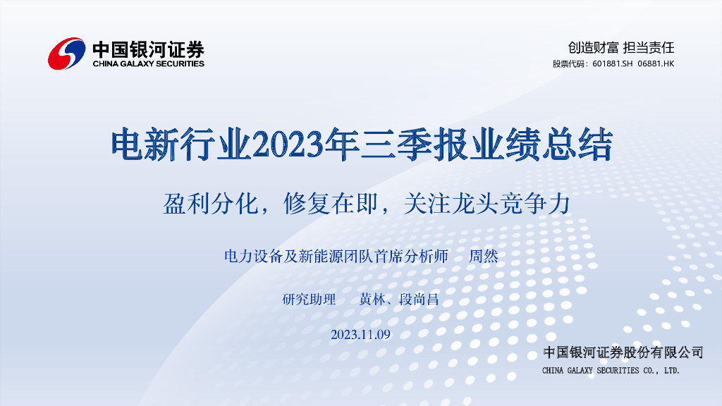 中国银河:电新行业2023年三季报业绩总结:盈利分化,修复在即,关注龙头竞争力.pdf