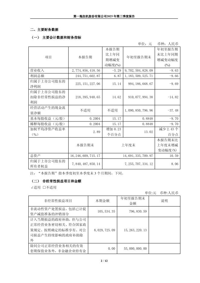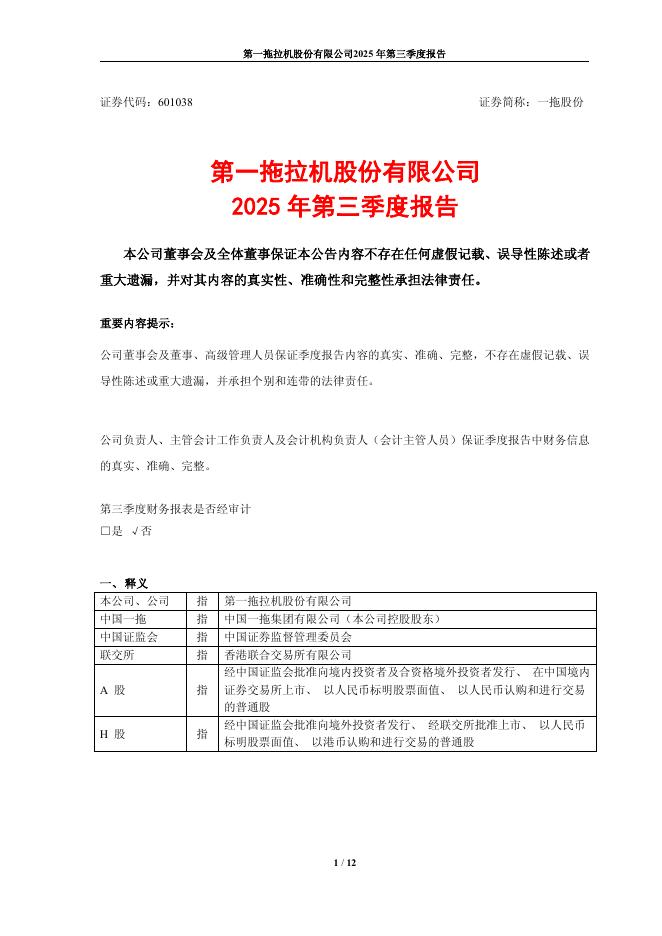 601038-一拖股份:一拖股份2025年第三季度报告.pdf