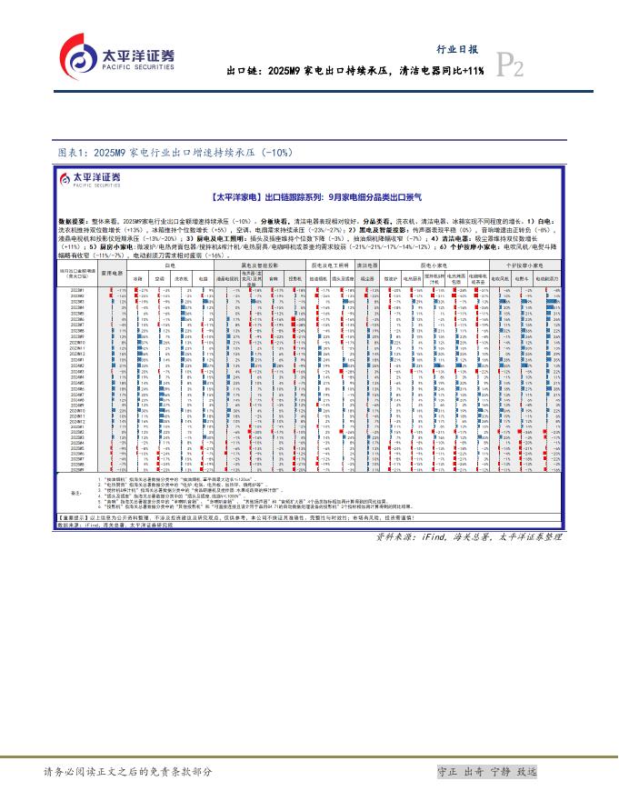 太平洋证券:家电行业日报:出口链:2025M9家电出口持续承压,清洁电器同比+11%.pdf