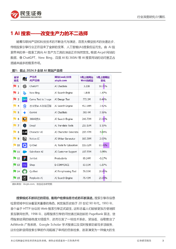 民生证券:计算机行业深度报告:AI搜索:大模型商业落地“第一束光”.pdf