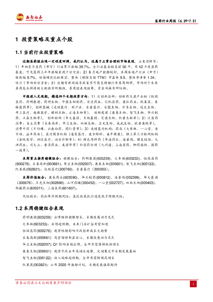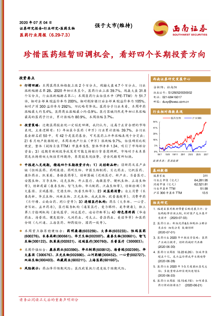 西南证券:医药行业周报:珍惜医药短暂回调机会,看好四个长期投资方向.pdf