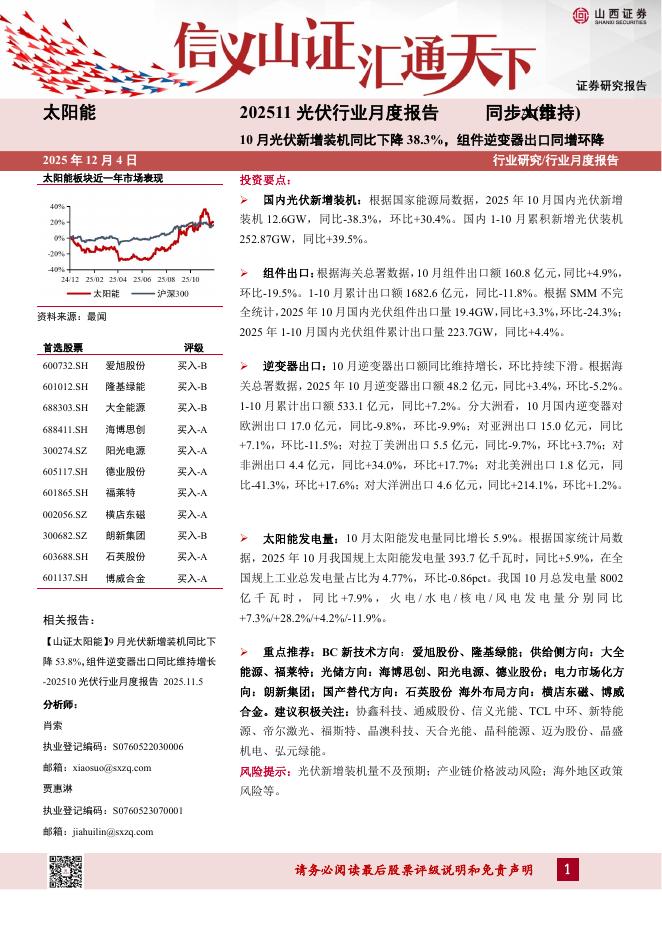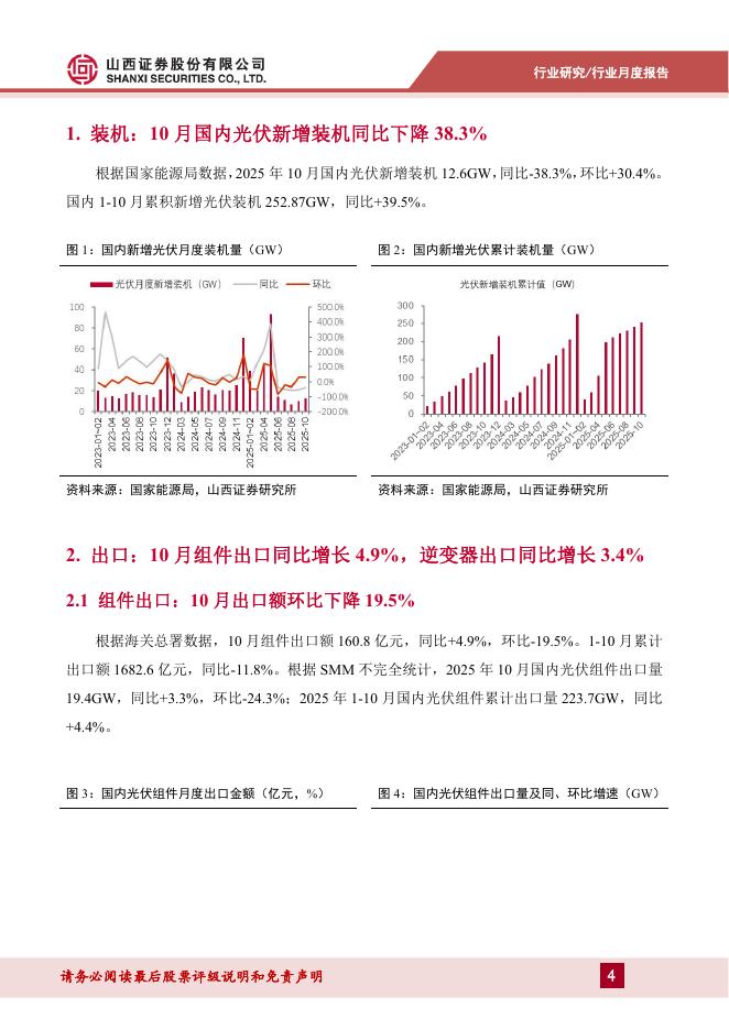 山西证券:202511光伏行业月度报告:10月光伏新增装机同比下降38.3%,组件逆变器出口同增环降.pdf