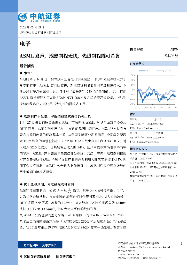 中航证券:电子:ASML发声,成熟制程无忧,先进制程或可希冀.pdf