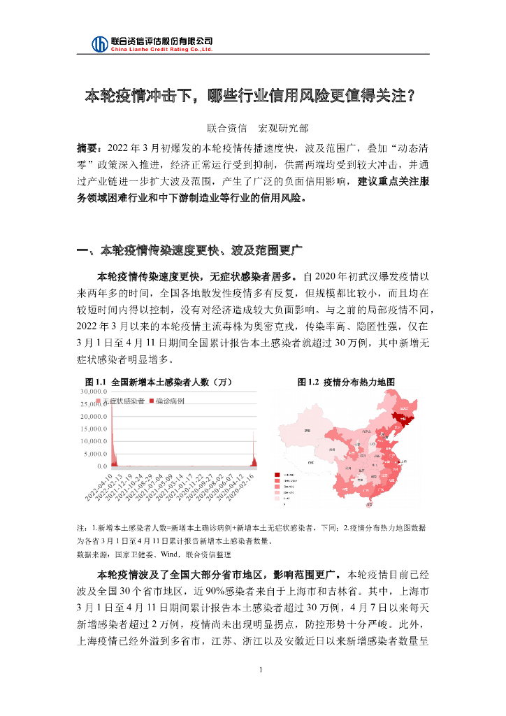 联合资信:本轮疫情冲击下,哪些行业信用风险更值得关注?.doc