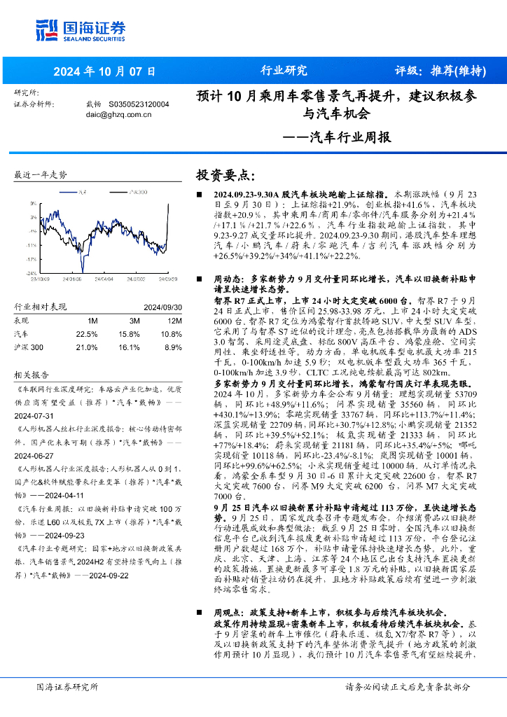 国海证券:汽车行业周报:预计10月乘用车零售景气再提升,建议积极参与汽车机会.pdf