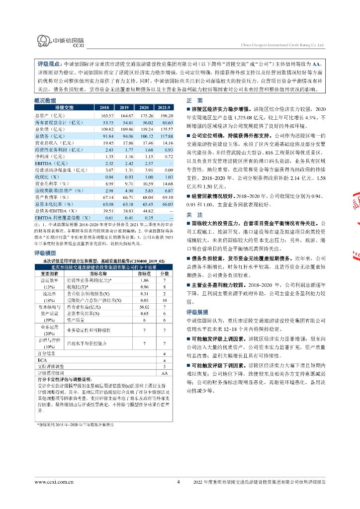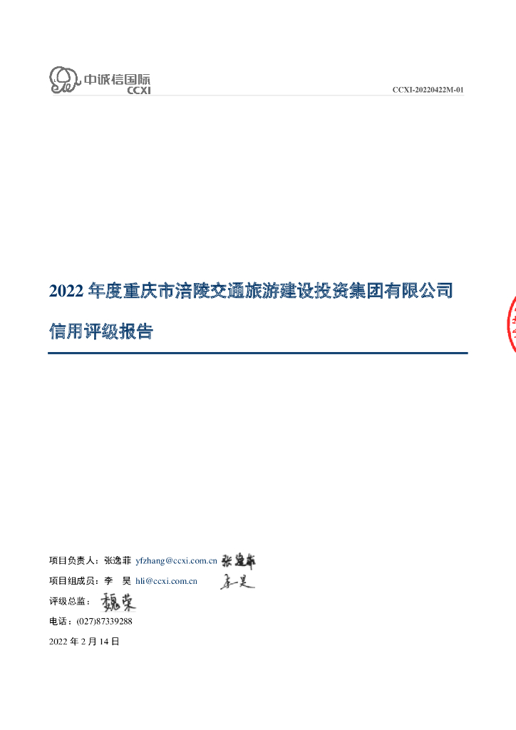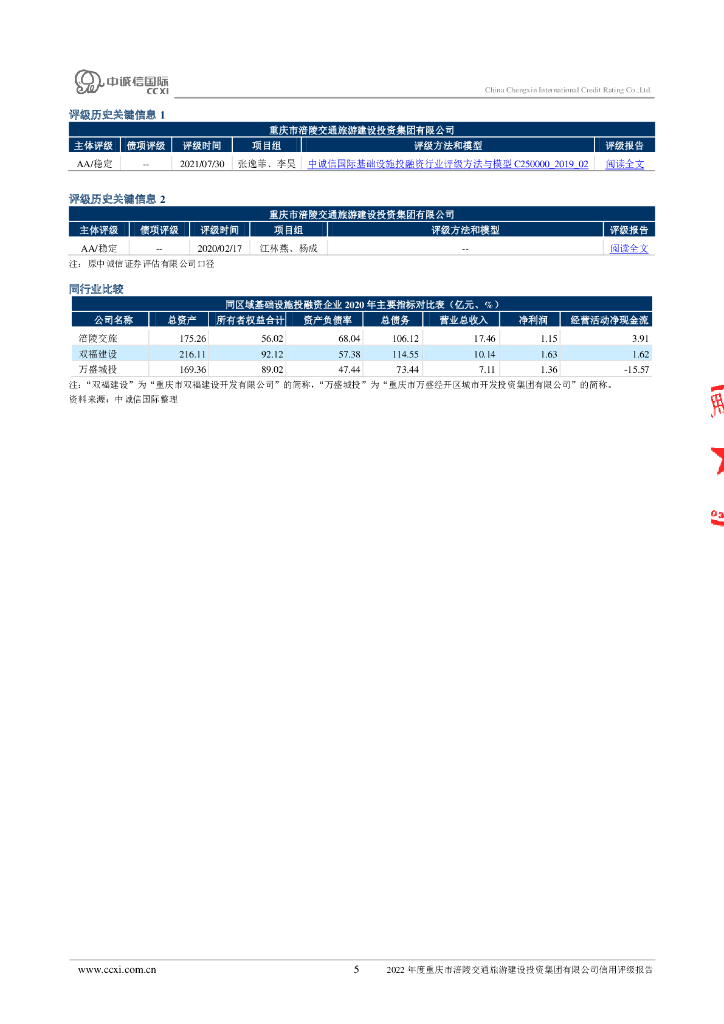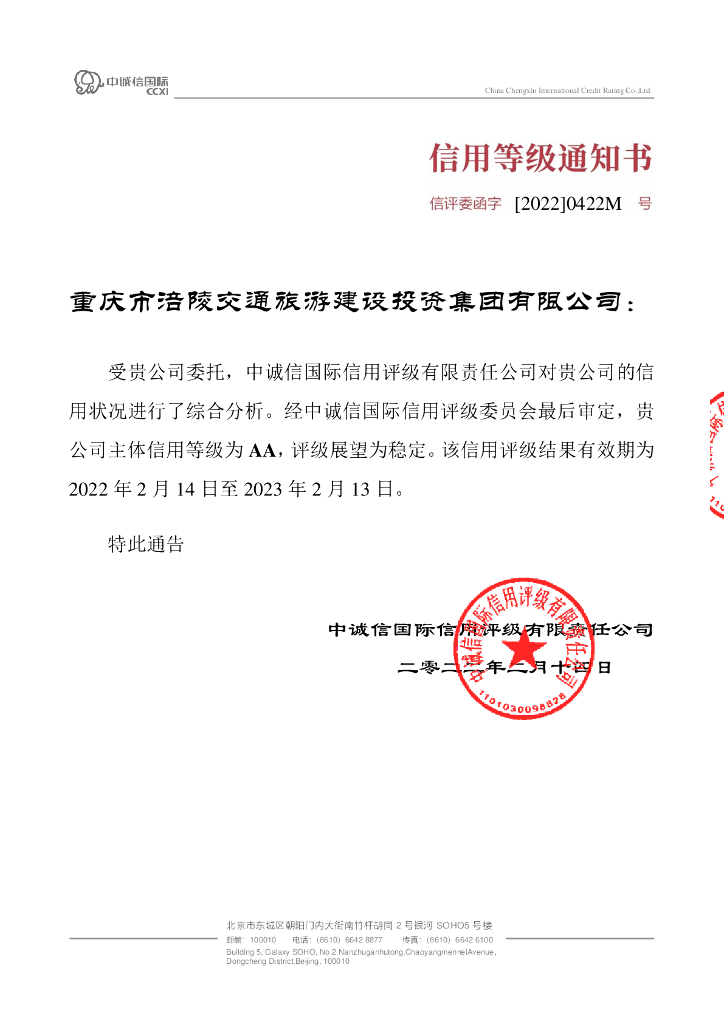中诚信:2022年度重庆市涪陵交通旅游建设投资集团有限公司信用评级报告.pdf
