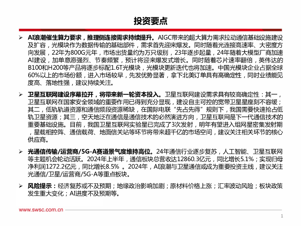 西南证券:通信行业2024Q4投资观点:AI连接需求旺盛,通信技术持续迭代.pdf