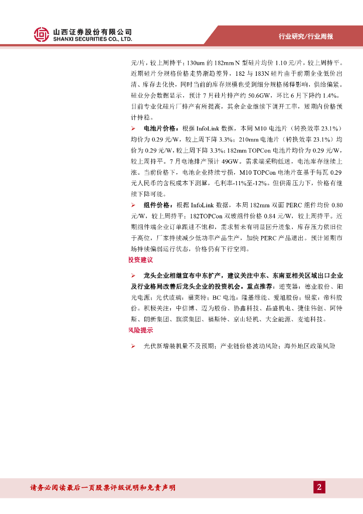 山西证券:太阳能行业周报:1-6月太阳能发电装机容量同比增长51.6%,产业链价格筑底.pdf