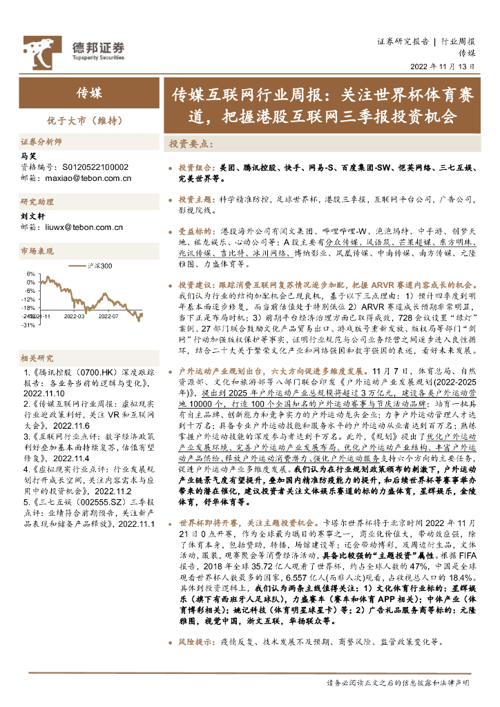 德邦证券:传媒互联网行业周报:关注世界杯体育赛道,把握港股互联网三季报投资机会.pdf