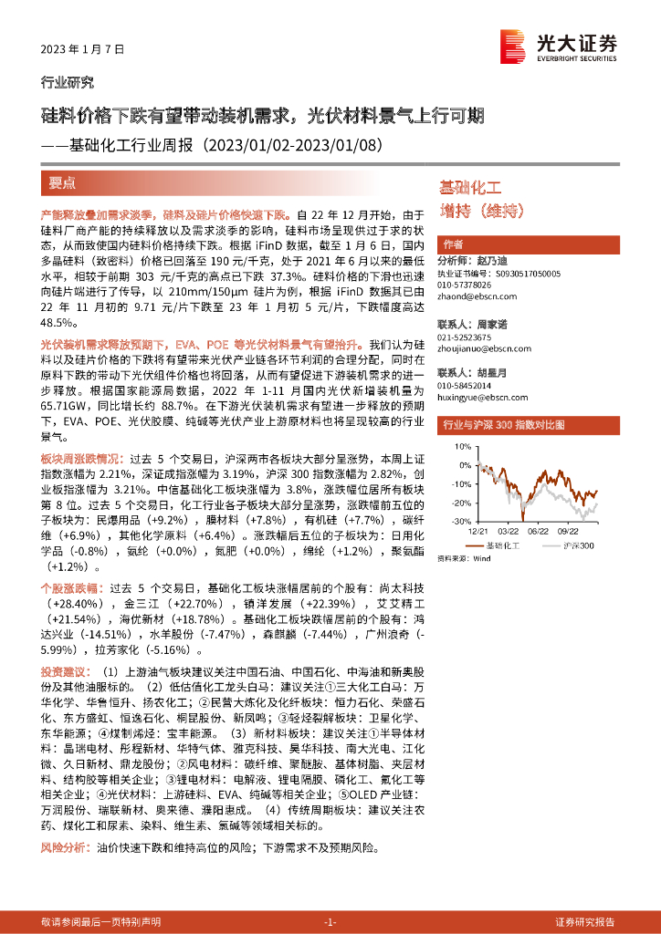 光大证券:基础化工行业周报:硅料价格下跌有望带动装机需求,光伏材料景气上行可期.pdf