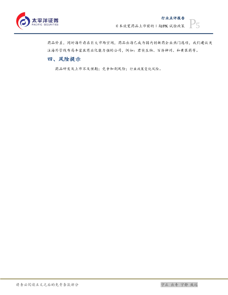 太平洋证券:医药生物:日本放宽药品上市前的Ⅰ期/PK试验政策.pdf