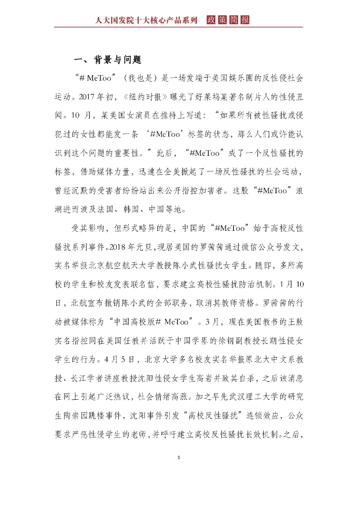 人大国发院:国发院政策简报第三十七期:“#MeToo高校反性骚扰事件”的社会学分析与对策建议.pdf