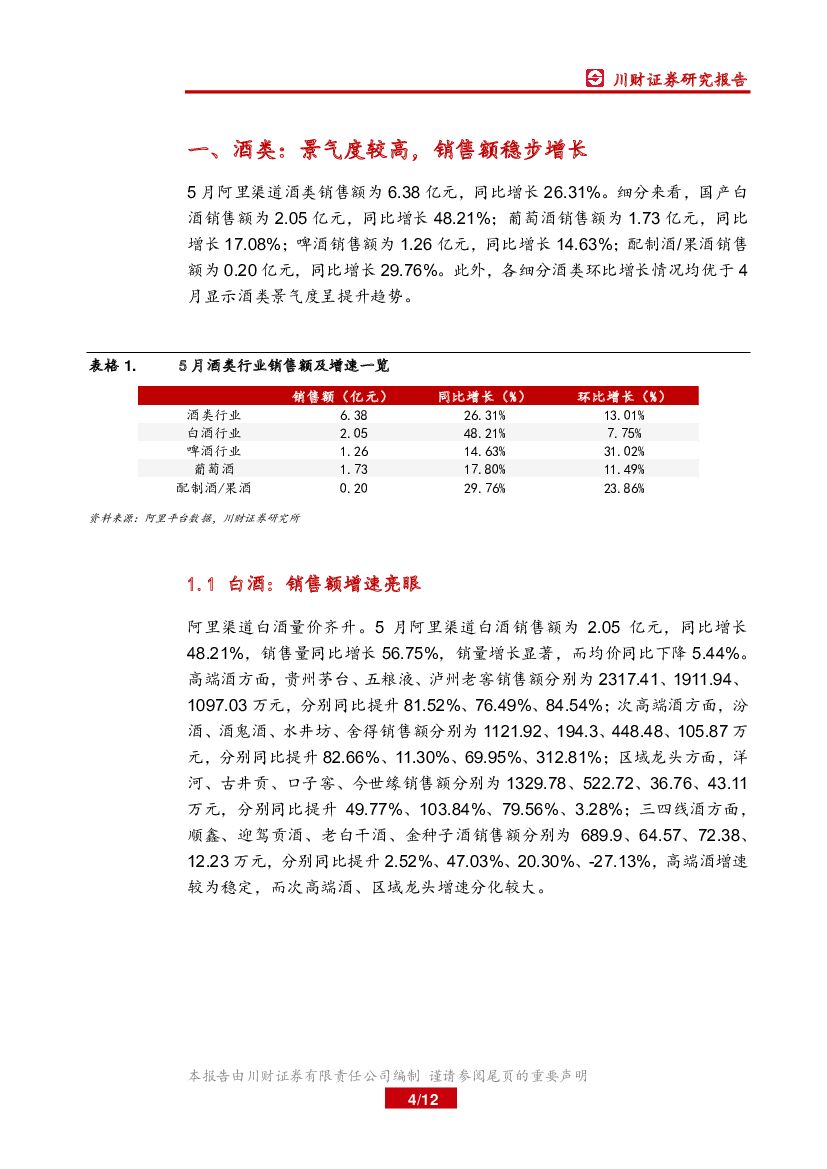 川财证券:食品饮料行业5月线上数据分析专题:白酒销售额增速亮眼,保健品稳定增长.pdf