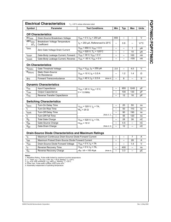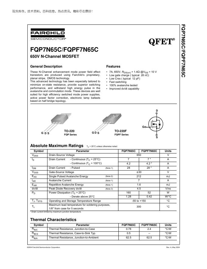 FAIRCHILD FQP7N65C/FQPF7N65C 数据手册.pdf