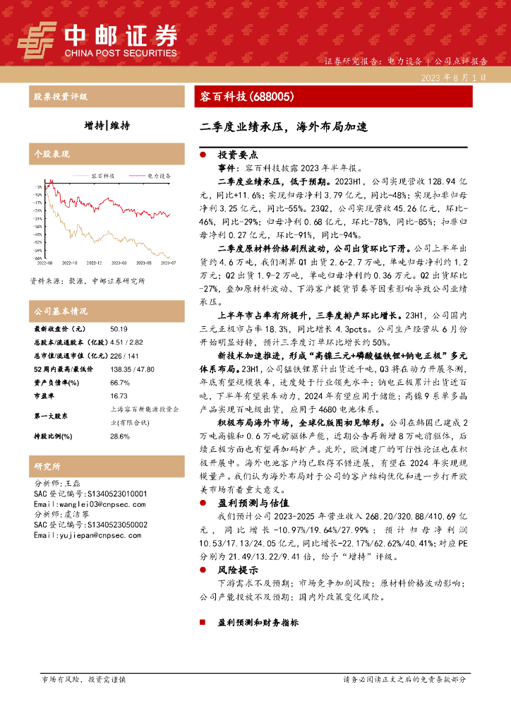 中邮证券:容百科技(688005)-二季度业绩承压,海外布局加速.pdf
