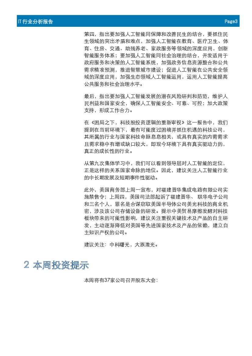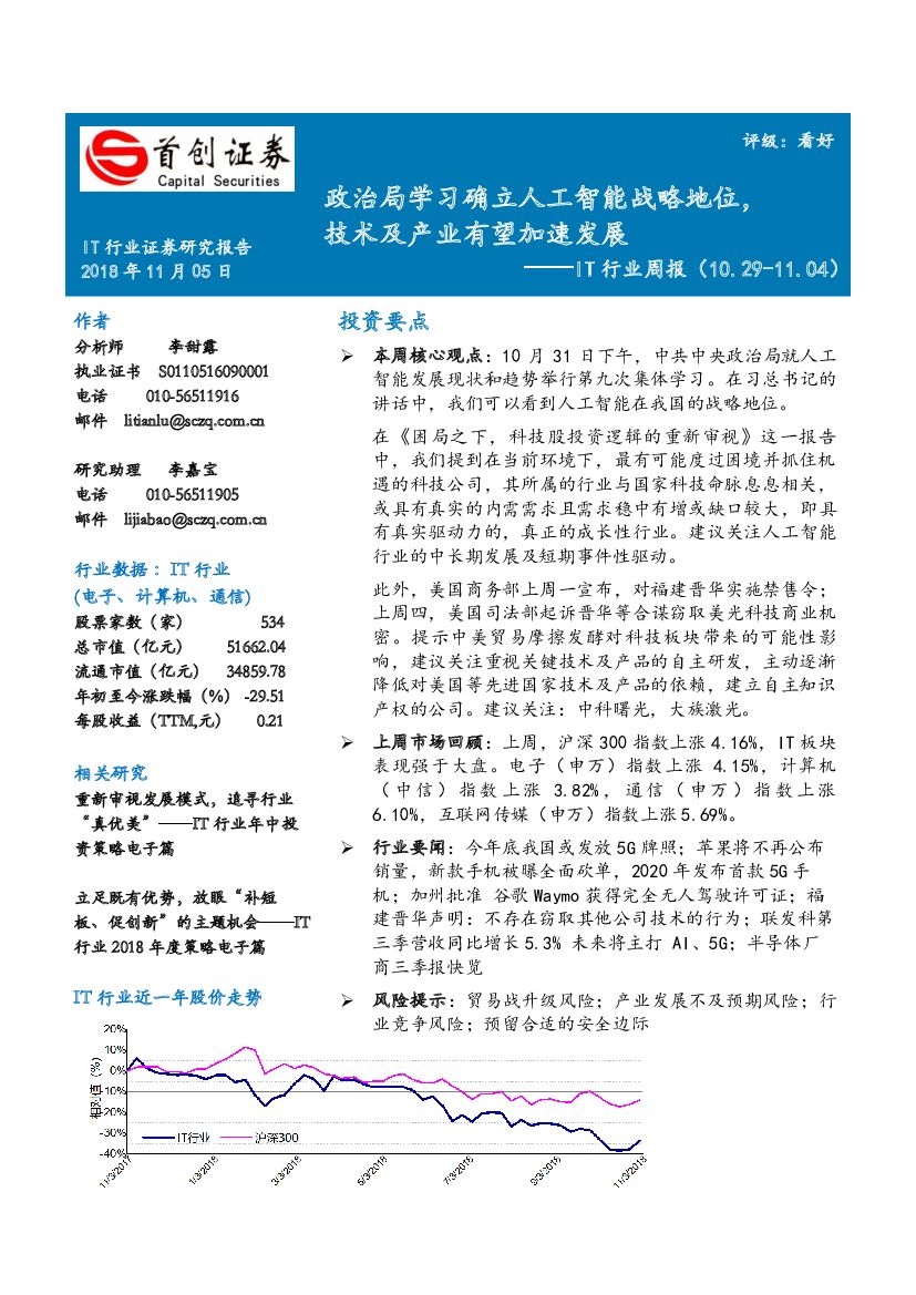 首创证券:IT行业周报:政治局学习确立人工智能战略地位,技术及产业有望加速发展.pdf