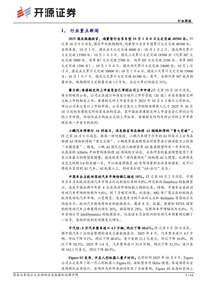 开源证券:汽车行业周报:小鹏汽车将举行AI科技日,Figure03开启人形机器人量产时代.pdf