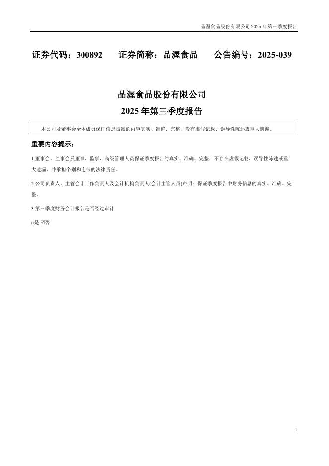 300892-品渥食品:2025年三季度报告.pdf