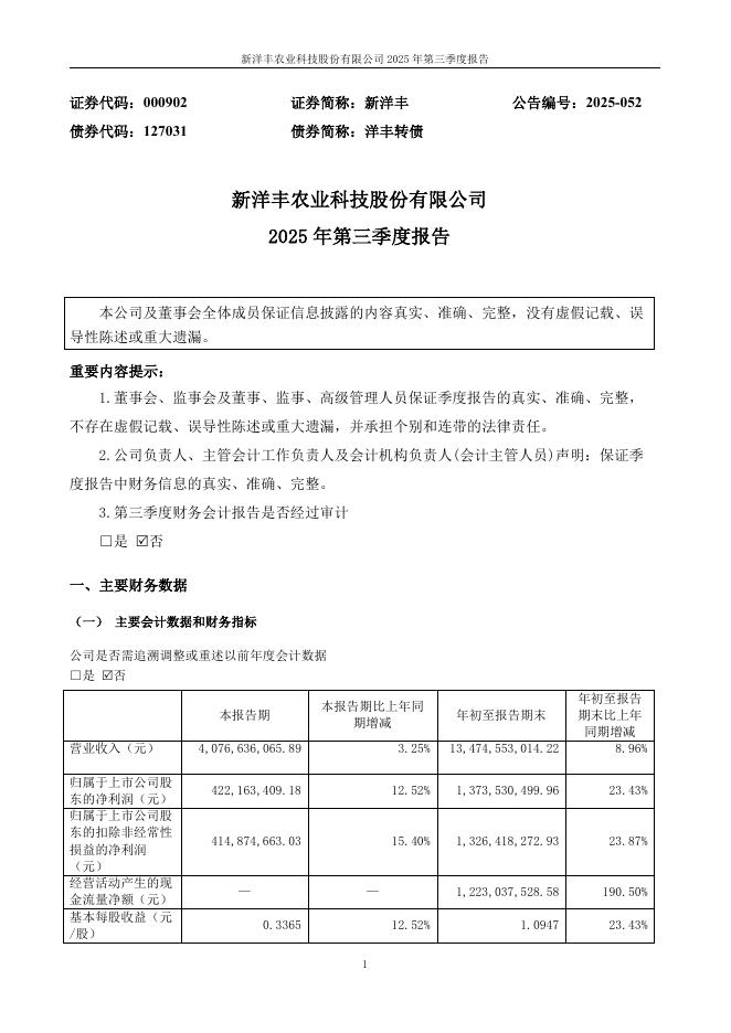 000902-新洋丰:2025年三季度报告.pdf