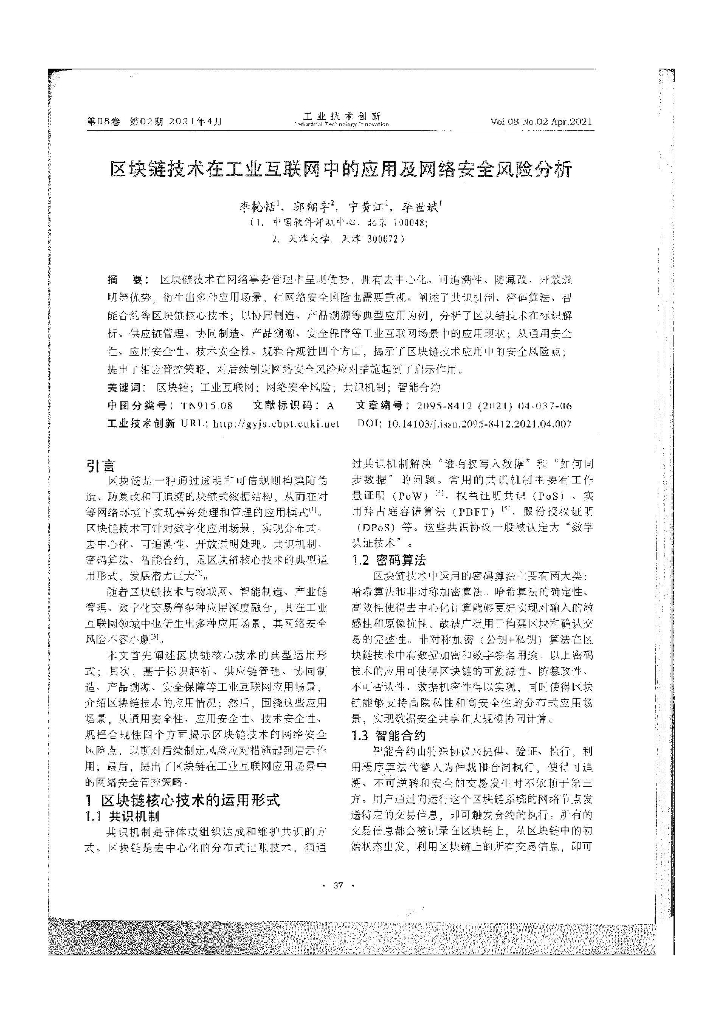 工业技术创新:区块链技术在工业互联网中的应用及网络安全风险分析.pdf