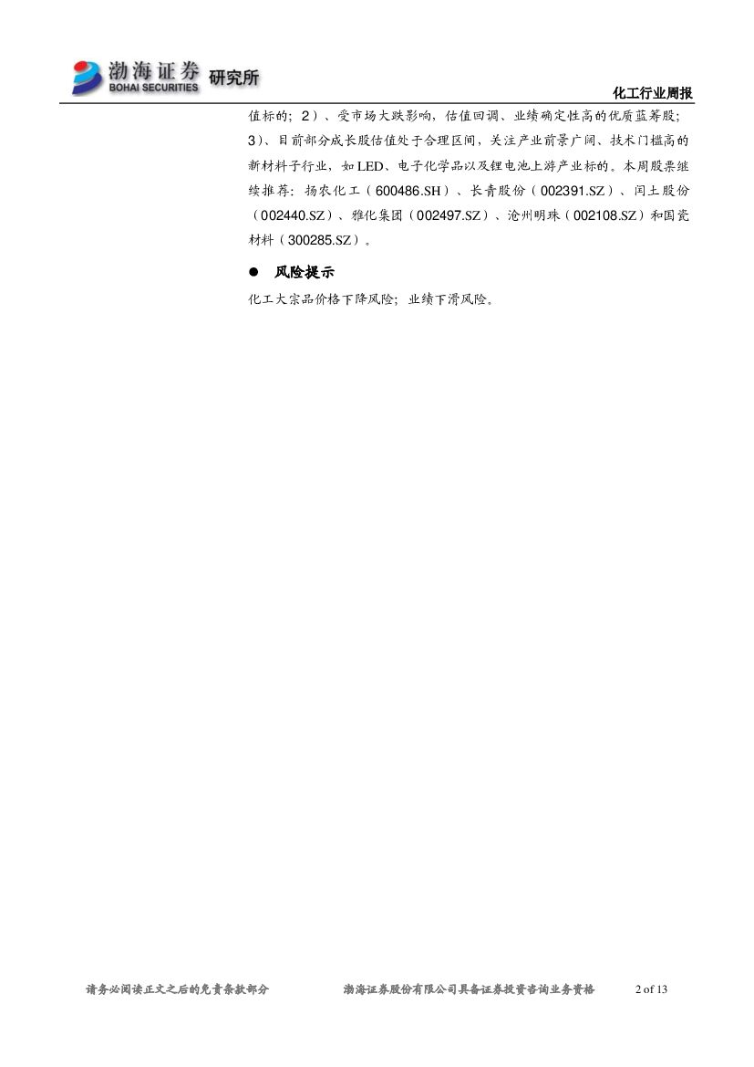 渤海证券:化工行业周报:本周化工品市场有改善,重点关注低估值成长股.pdf