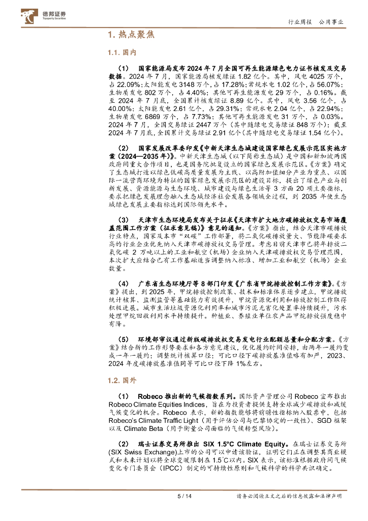 德邦证券:公用事业行业ESG周报:国家能源局发布2024年7月全国可再生能源绿色电力证书核发及交易数据.pdf