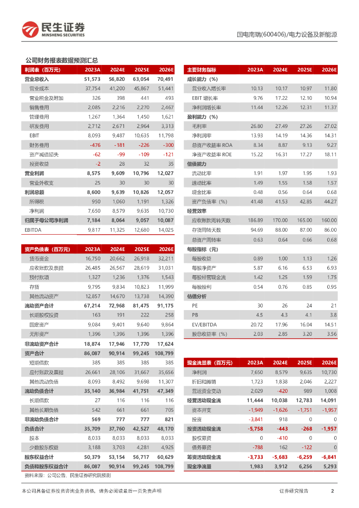 民生证券:国电南瑞(600406)-2024年三季报点评:24Q3业绩稳健,持续推动研发创新.pdf