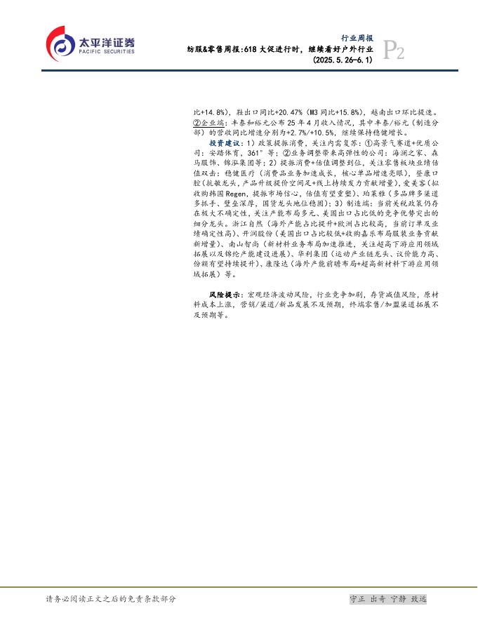 太平洋证券:纺服&零售行业周报:618大促进行时,继续看好户外行业(2025.5.26-6.1).pdf