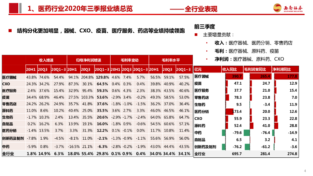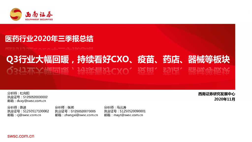 西南证券:医药行业2020年三季报总结:Q3行业大幅回暖,持续看好CXO、疫苗、药店、器械等板块.pdf