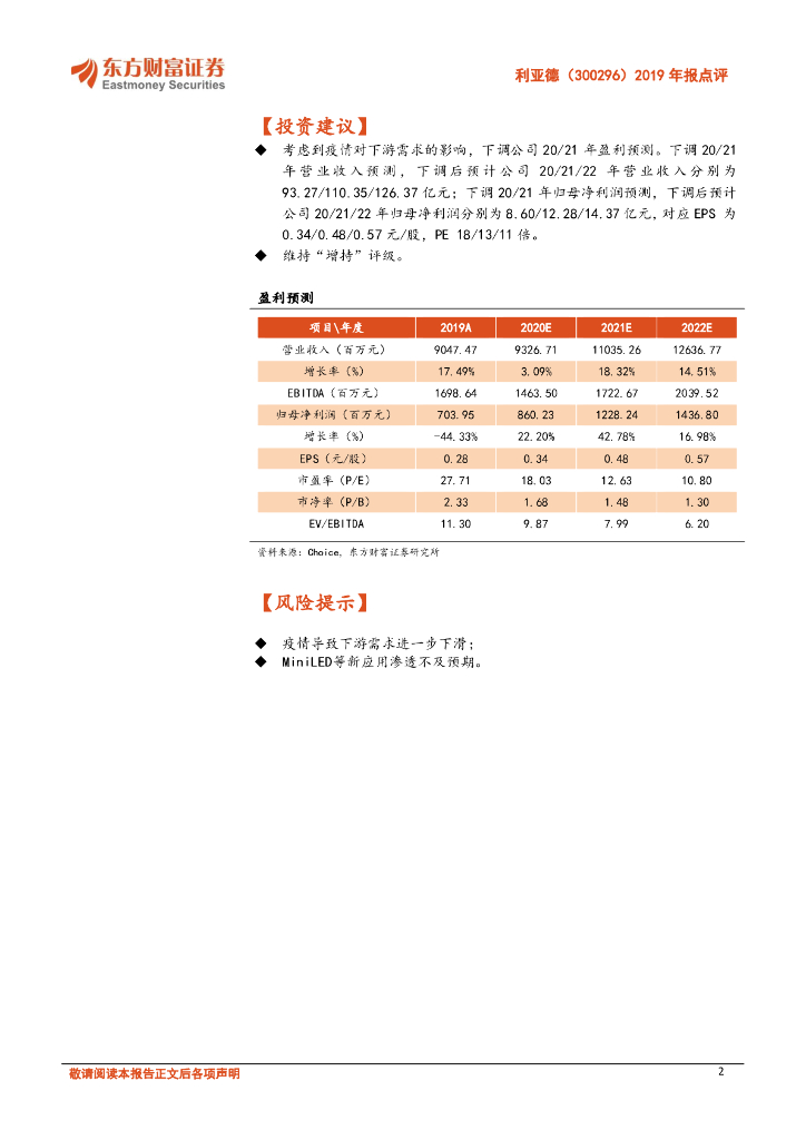 东方财富证券:利亚德(300296)-2019年报点评:景观照明业务影响利润,布局MiniLED创造新增长点.pdf