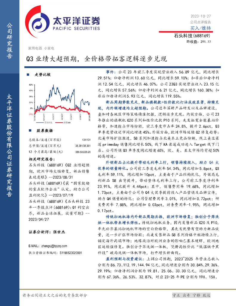 太平洋证券:石头科技(688169)-Q3业绩大超预期,全价格带拓客逻辑逐步兑现.pdf