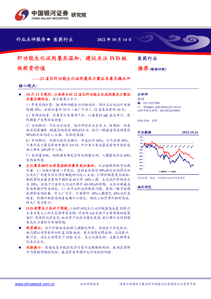 中国银河:医药行业:22省区肝功能生化试剂集采方案征求意见稿点评-肝功能生化试剂集采温和,建议关注IVD板块投资价值.pdf