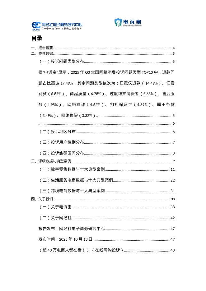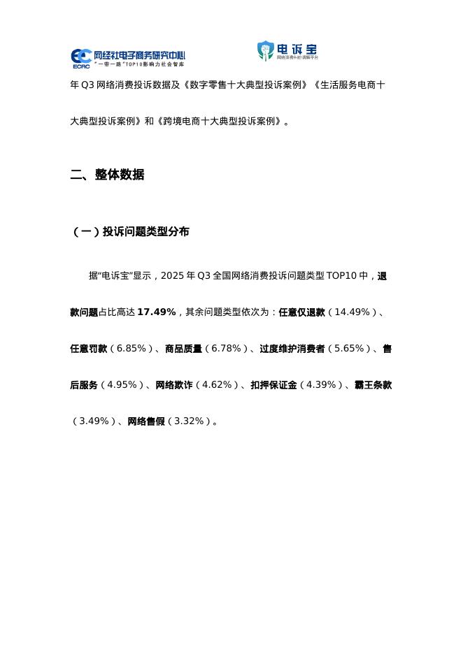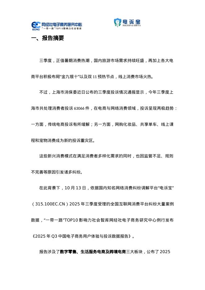 网经社:2025年Q3电子商务用户体验与投诉数据报告.doc
