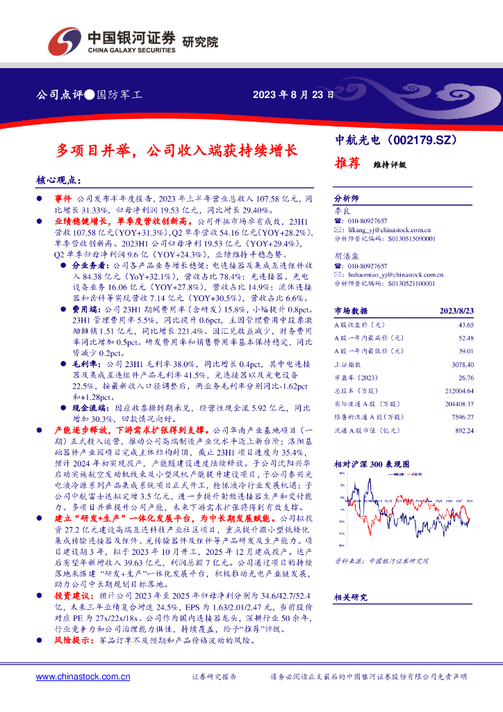 中国银河:中航光电(002179)-多项目并举,公司收入端获持续增长.pdf