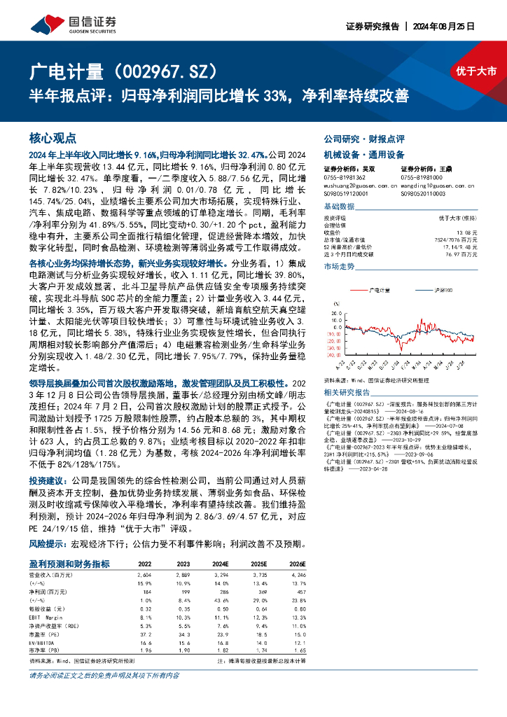 国信证券:广电计量(002967)-半年报点评:归母净利润同比增长33%,净利率持续改善.pdf