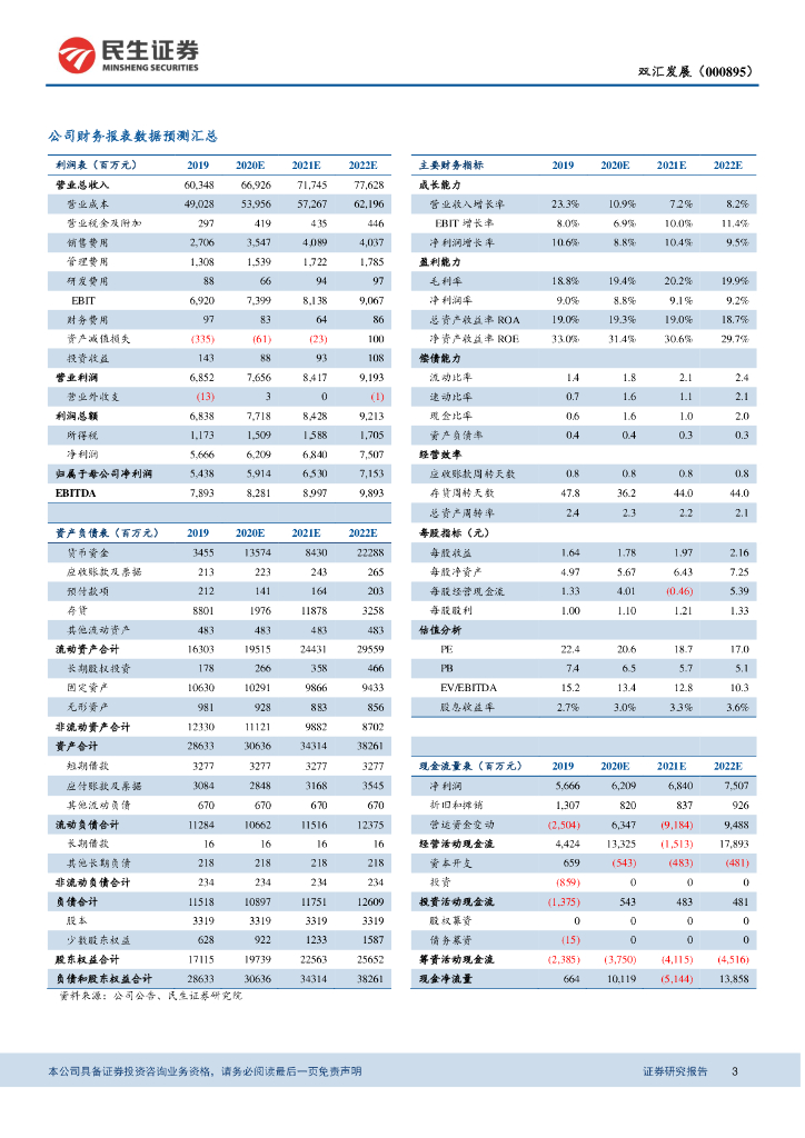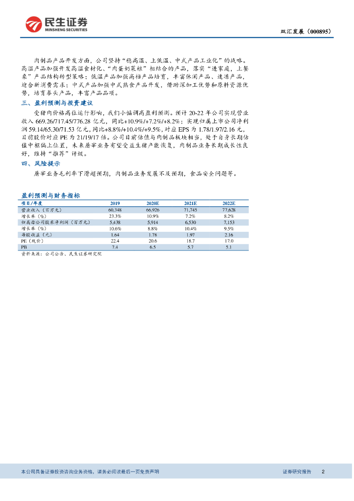 民生证券:双汇发展(000895)-2019年报公告点评:整体业绩表现平稳,肉制品增速恢复.pdf