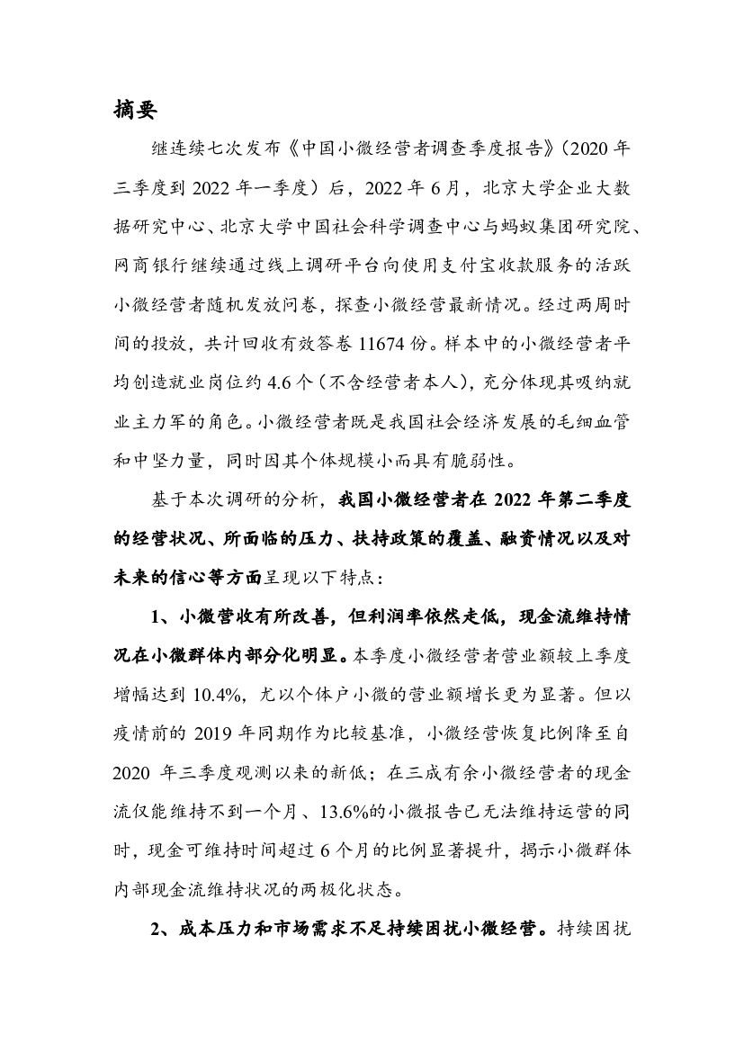北京大学&蚂蚁集团:中国小微经营者调查2022年二季度报告暨2022年三季度中国小微经营信心指数报告.pdf