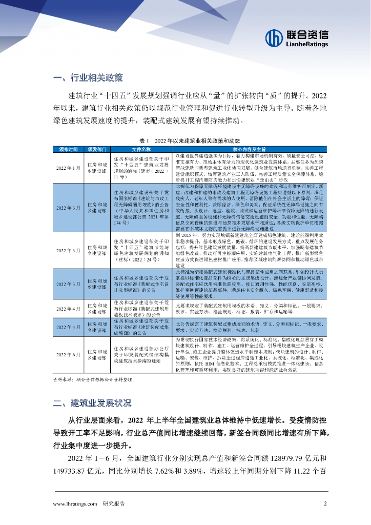 联合资信:基建投资持续发力和融资环境改善,建筑施工行业流动性压力有所缓解-建筑施工行业2022年二季度观察报告.pdf
