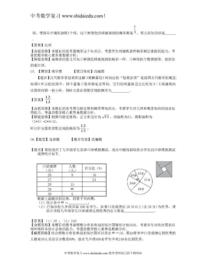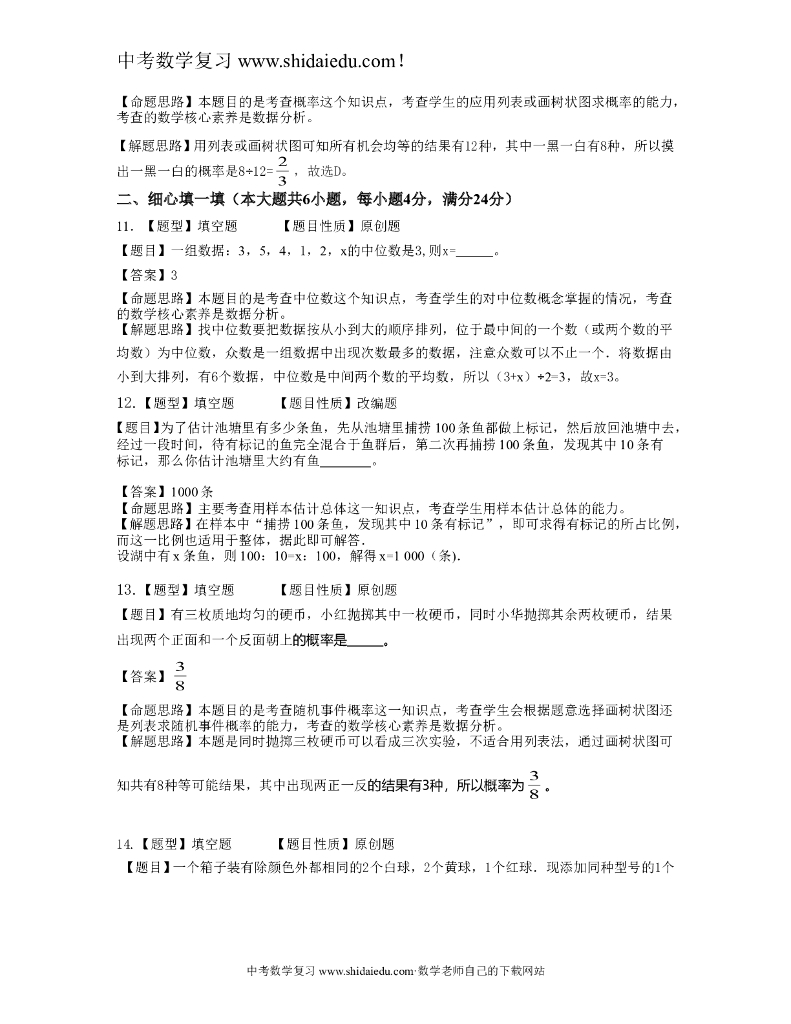 南安市中考数学总复习过关卷(11)统计与概率——解析版.doc