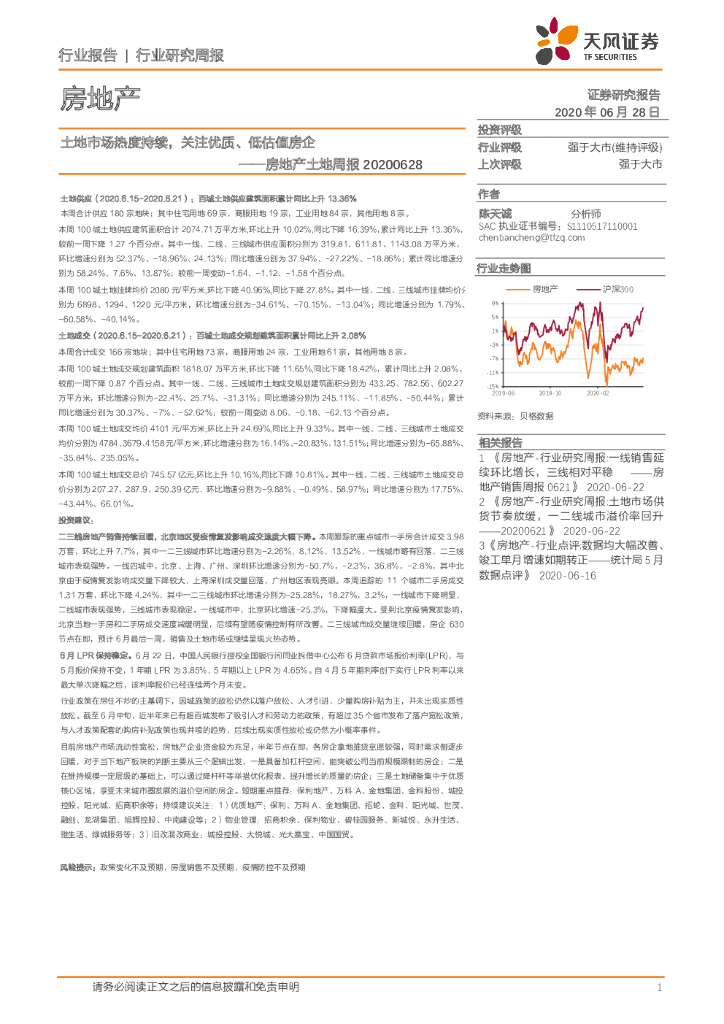 天风证券:房地产土地周报:土地市场热度持续,关注优质、低估值房企.pdf