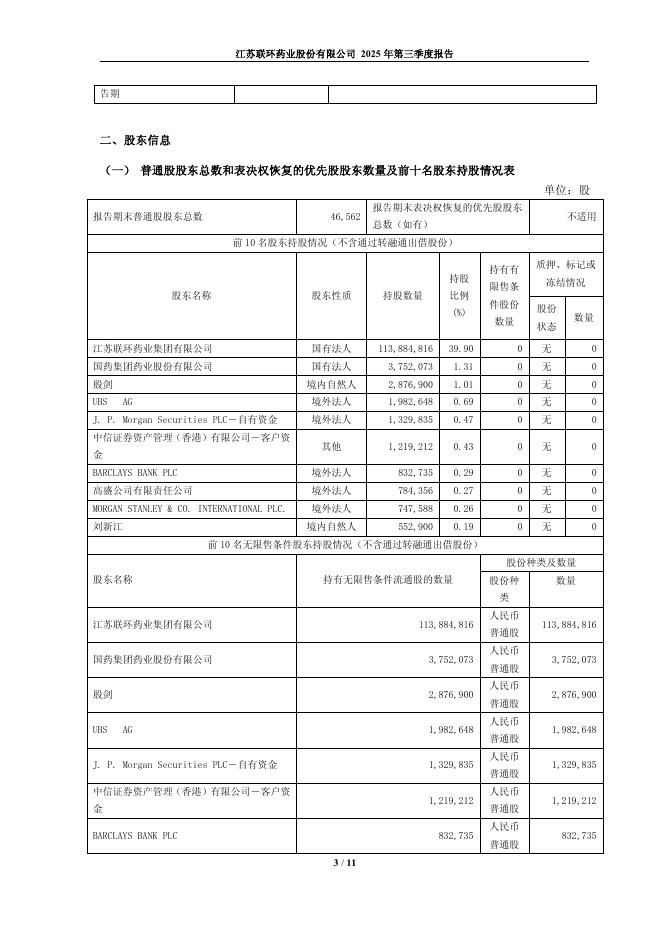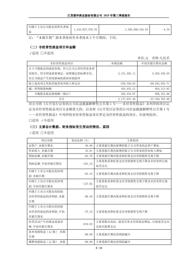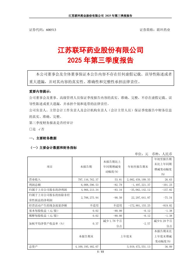 600513-联环药业:联环药业2025年三季度报告.pdf