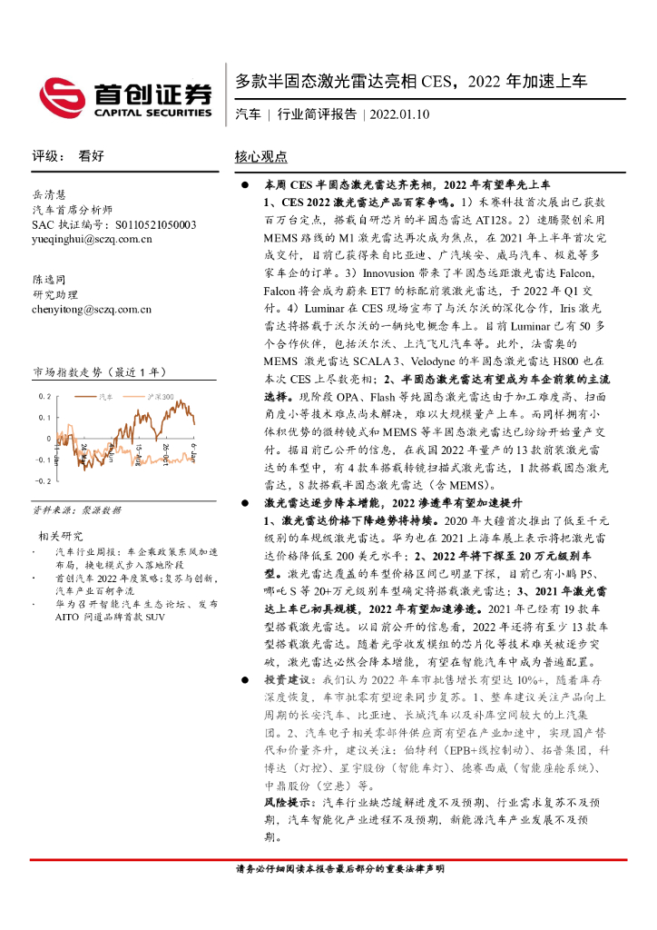首创证券:汽车行业简评报告:多款半固态激光雷达亮相CES,2022年加速上车.pdf