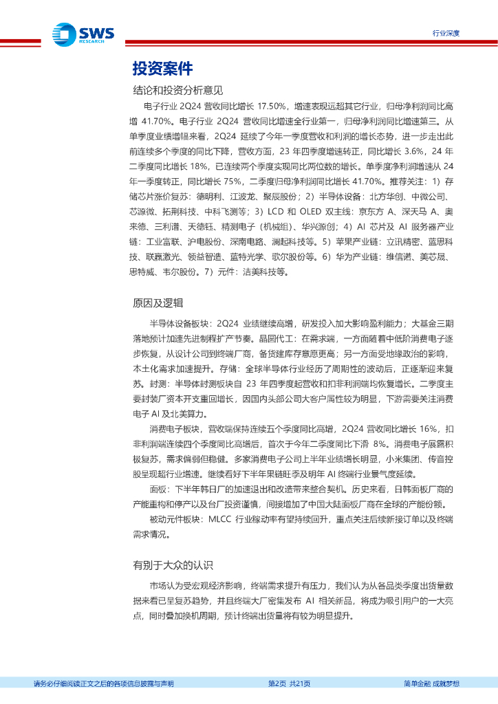 申万宏源:电子行业2024年中报回顾:AI、半导体双引擎拉动,Q2净利yoy高增42%.pdf