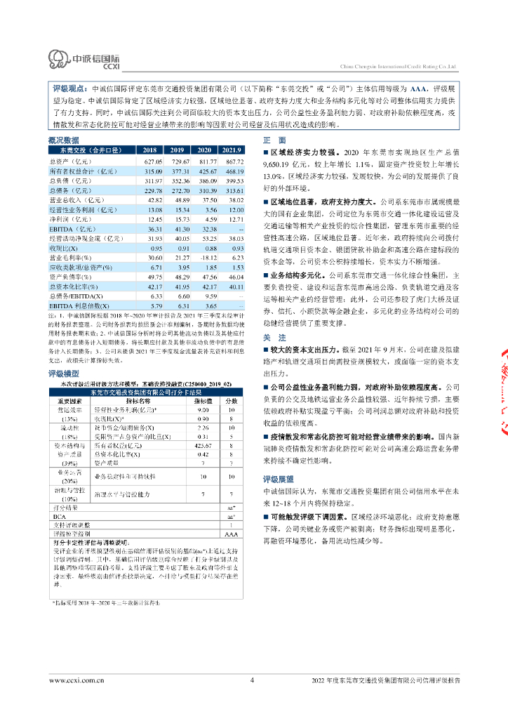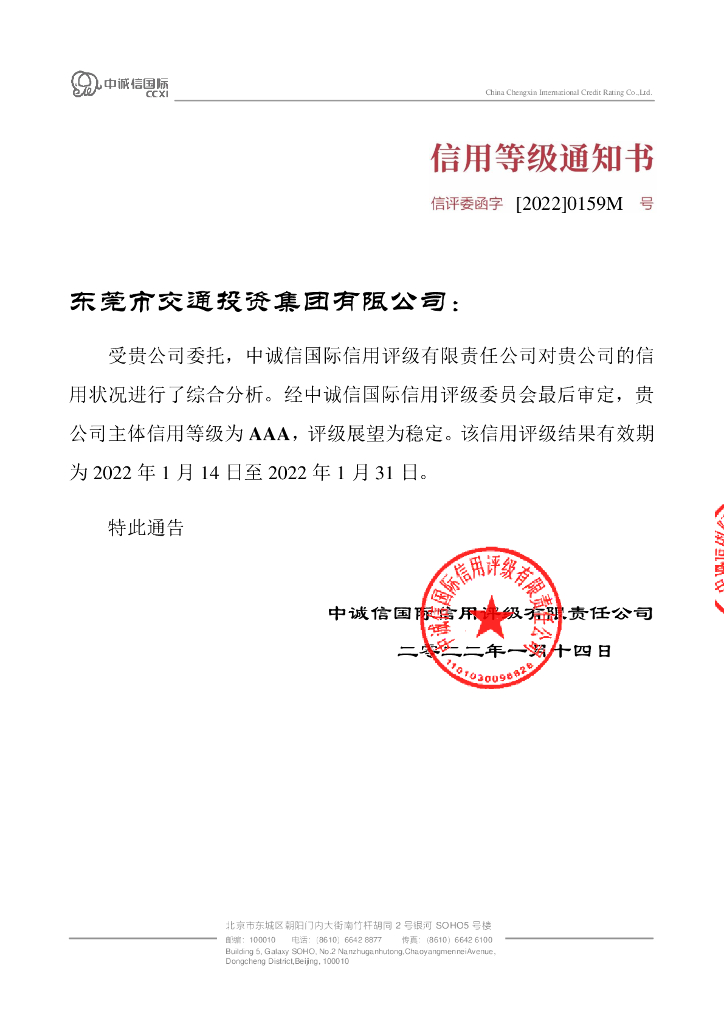 中诚信:2022年度东莞市交通投资集团有限公司信用评级报告.pdf