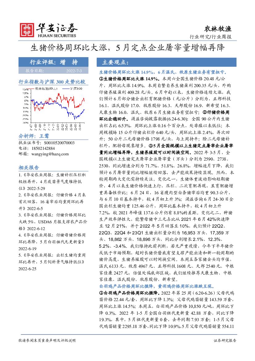华安证券:农林牧渔行业周报:生猪价格周环比大涨,5月定点企业屠宰量增幅再降.pdf