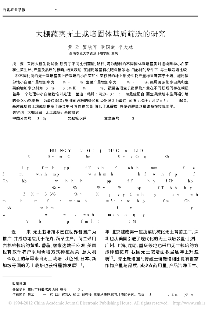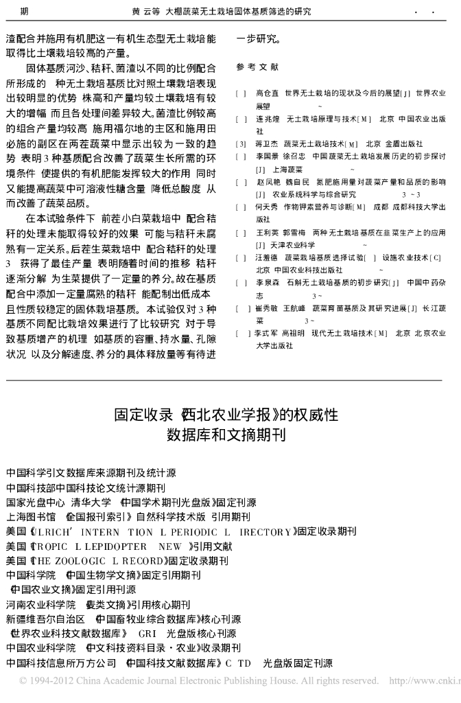 《园林植物栽培技术》大棚蔬菜无土栽培固体基质筛选的研究大棚蔬菜无土栽培固体基质筛选的研究.pdf