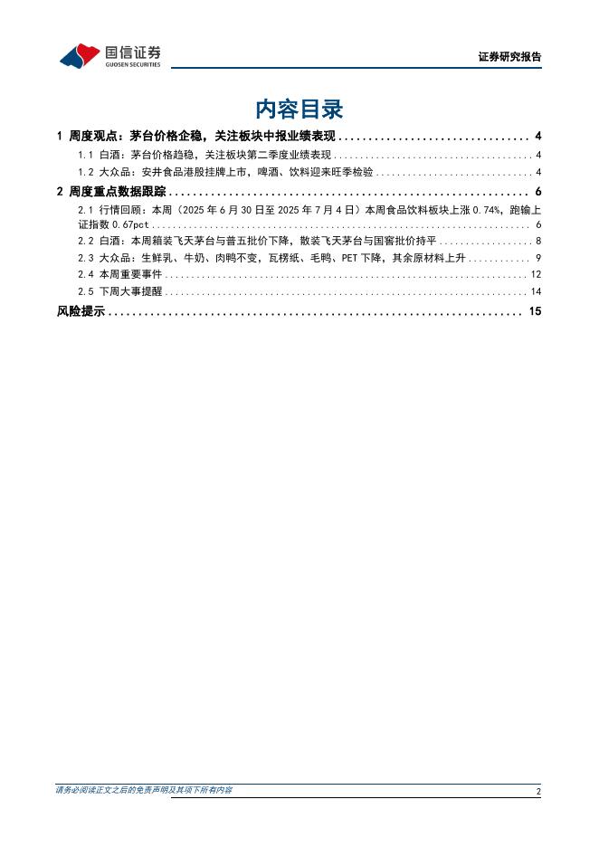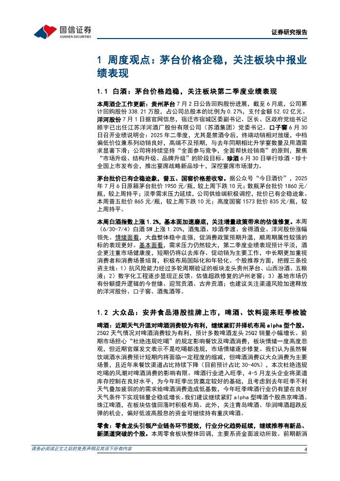 国信证券:食品饮料行业周报(25年第27周):茅台价格趋稳,关注板块中报业绩表现.pdf